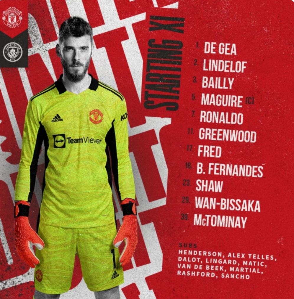 It is time for the Manchester Derby! The Red Devils are hosting Manchester City and this is the team Ole Gunnar Solskjaer has chosen. David de Gea starts in goal as usual, while the system is once again with three centre-backs. Maguire, Bailly and Lindelof feature in it, with Shaw and Wan-Bissaka as wing-backs. Fred and McTominay form the central midfield partnership, behind Bruno Fernandes, Cristiano Ronaldo and Mason Greenwood start up top. This is another match in which United start in a 3-5-2 formation, without proper wingers on the pitch.