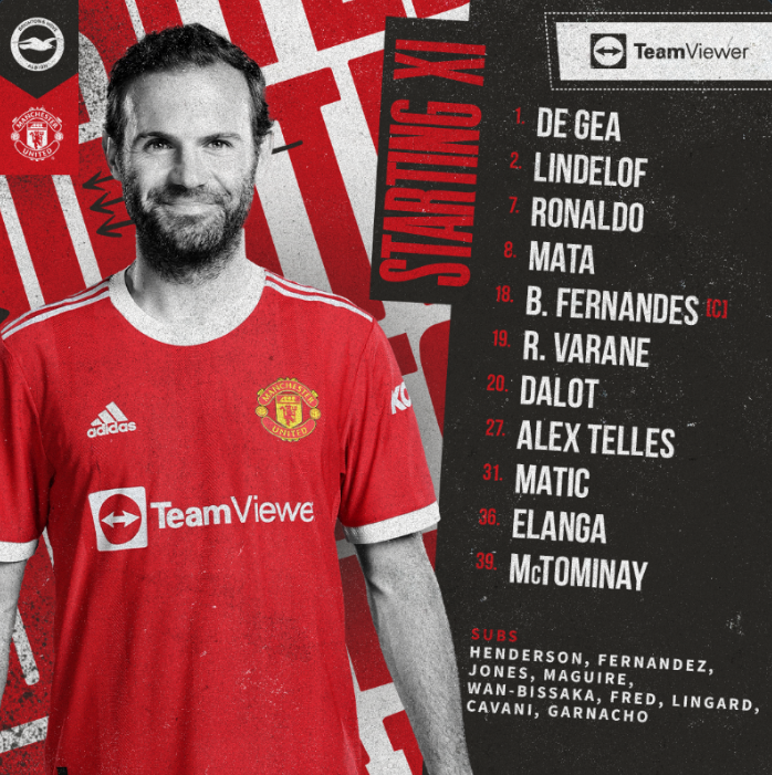 Manchester United are ready for their penultimate match of the season. Ralf Rangnick has named an unchanged starting 11, keeping the same team that defeated Brentford on Monday night. De Gea is in goal, with Raphael Varane and Victor Lindelof in front of him. Alex Telles and Diogo Dalot keep their full-back positions, while Nemanja Matic and Scott McTominay again form partnership in central midfield. Juan Mata once more goes in the number 10 role, making Brun Fernandes move to the left. Anthony Elanga is once more on the right wing following a fine performance, while Cristiano Ronaldo is the lone striker, as has been the case on most occasions this season.