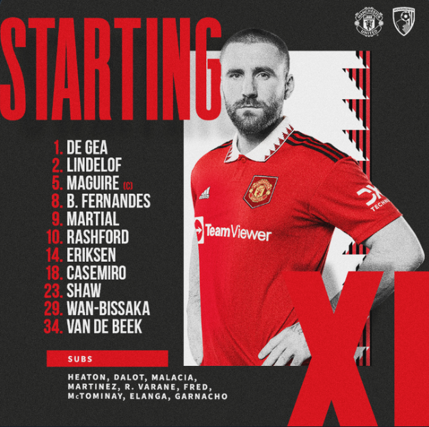 CONFIRMED: Manchester United Starting XI vs Bournemouth