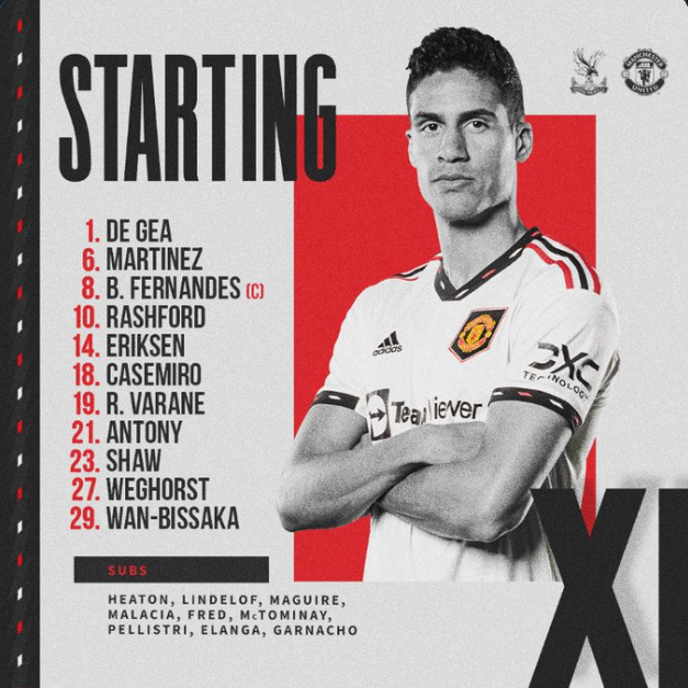 Manchester United are back in action and for the first time in 2023, here is the team to play away from Old Trafford. Wout Weghorst gets his start as the striker at Selhurst Park, with Erik Ten Hag opting for Antony and Marcus Rashford on the flanks to feed him. Bruno Fernandes is in the playmaking role as the captain, while United’s best central midfield partnership is behind, with Christian Eriksen and Casemiro starting. Luke Shaw and Aaron Wan-Bissaka are the two full-backs, while we finally get to see Lisandro Martinez and Raphael Varane partner up in central defence. David De Gea is once again in goal, as expected.