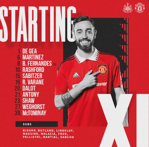 Manchester United are back in action after the international break and they are at St James’ Park. In the League Cup final rematch, Erik Ten Hag chose David De Gea in goal, with the usual centre-back partnership of Raphael Varane and Lisandro Martinez. Diogo Dalot and Luke Shaw remain the best full-back options and it is them who start. In midfield, Scott McTominay partners with Marcel Sabitzer, while Bruno Fernandes is in front of them, in his favourite attacking midfielder position. Antony is on the right wing, Marcus Rashford on the left, while Wout Weghorst gets another chance at redemption in attack, to prove his worth.