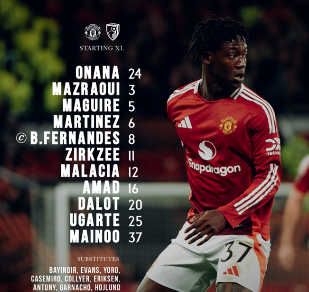 CONFIRMED: Manchester United Starting XI vs Bournemouth