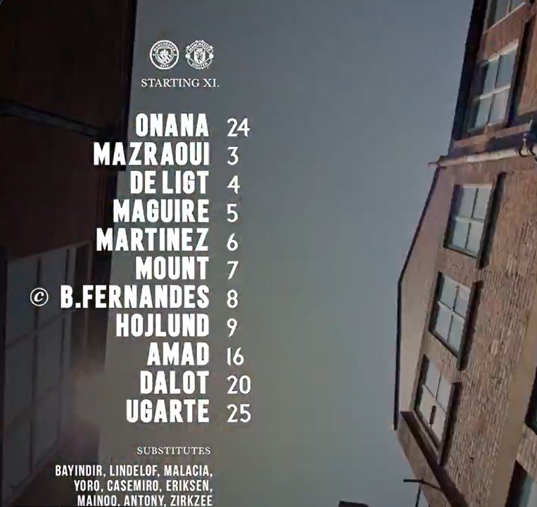 Manchester United are ready for another Manchester Derby and hoping to get the same result against Pep Guardiola’s City as they did in the FA Cup final last season. Andre Onana is in goal this time with Harry Maguire, Matthijs de Ligt and Lisandro Martinez as the three centre-backs in front of him. Bruno Fernandes once again captains the Devils from a central midfield position, but this time he plays there alongside Manuel Ugarte. Diogo Dalot is moved to left wing-back position, to facilitate Noussair Mazraoui on the right. This means it is Mason Mount and Amad Diallo who are the two attacking midfielders, behind Rasmus Hojlund.