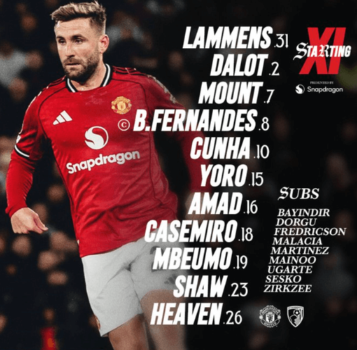 Manchester United are back in Premier League action on a Monday night and hopefully this time Old Trafford will see a victory of the Red Devils. Senne Lammens will be in goal tonight while Ayden Heaven continues to get opportunities in central defence. Luke Shaw and Leny Yoro will be his partners in the back three, while Casemiro and captain Bruno Fernandes to continue to make up the central midfield partnership. Amad Diallo is at right wingback and Diogo Dalot will have to keep playing on the opposite flank. Bryan Mbeumo is, as well as Diallo, set to play his final match before going to the Africa Cup of Nations, paired with Mason Mount, operating just behind the striker Matheus Cunha.