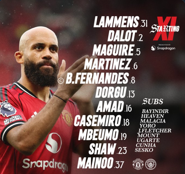 CONFIRMED: Manchester United Starting XI vs Manchester City